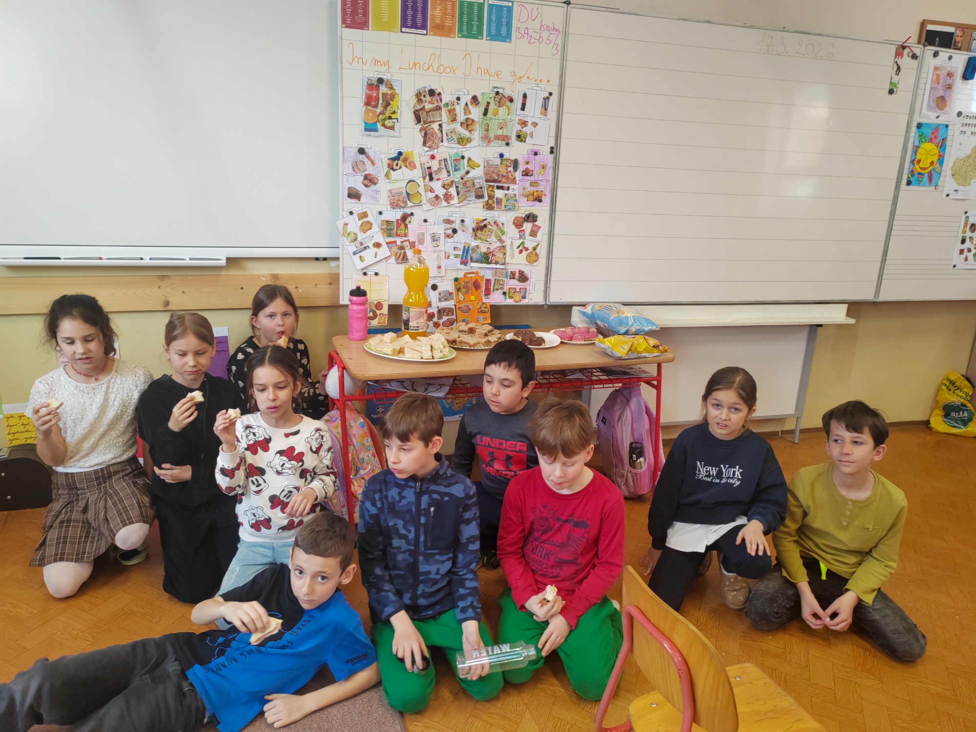 - V pondelok 16. a v utorok 17. marca zažili žiaci 3. A trochu netradičnú hodinu anglického jazyka. V rámci témy „My lunch box“ si pripravili ochutnávku rôznych druhov sendvičov.