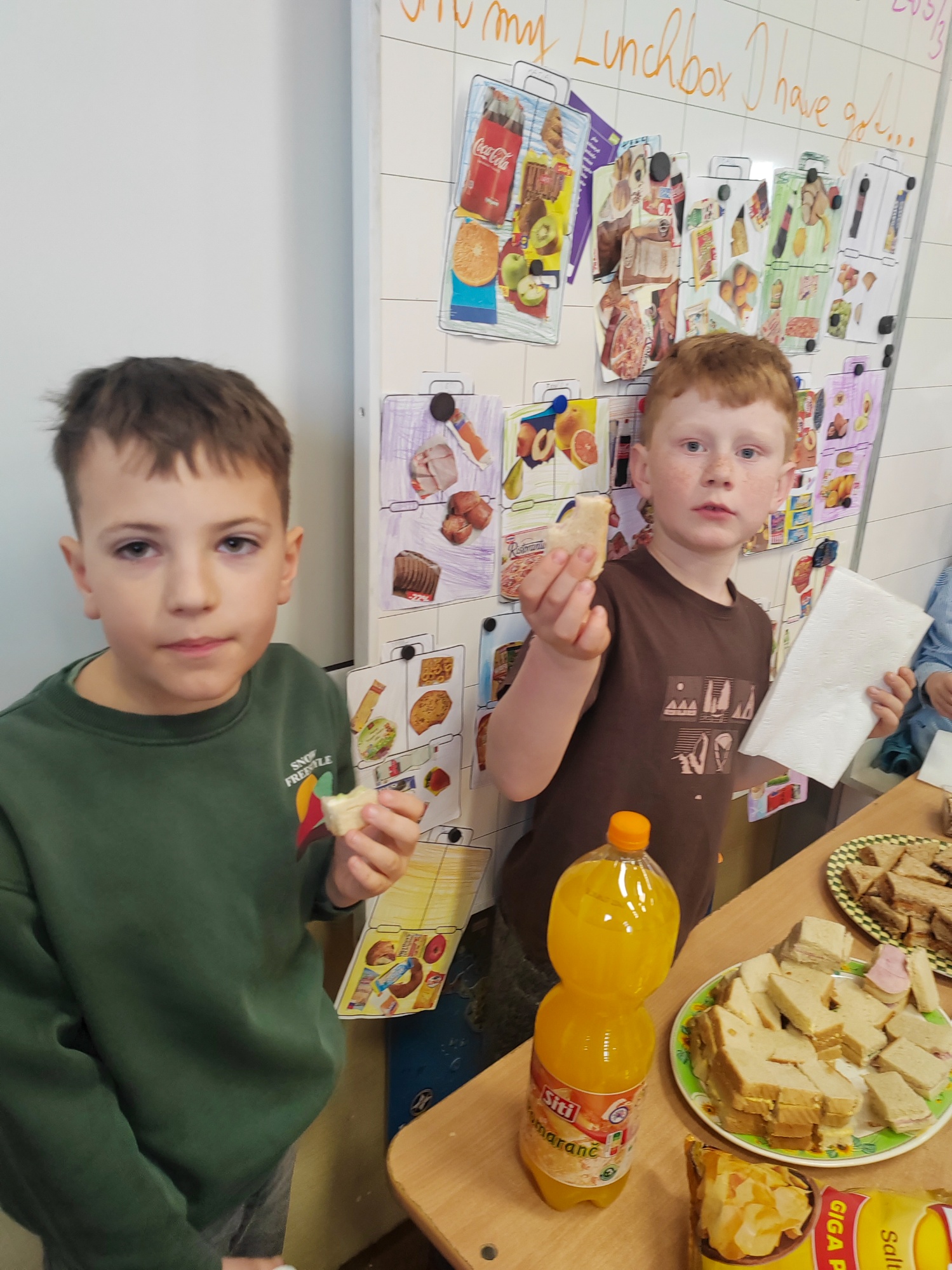 Deti mali možnosť vyskúšať typické desiaty, ktoré jedia ich rovesníci v Anglicku – napríklad uhorkové sendviče, vajíčkové sendviče, šunkovo-syrové sendviče, sendviče s arašidovým maslom a džemom či dokonca čokoládové sendviče.