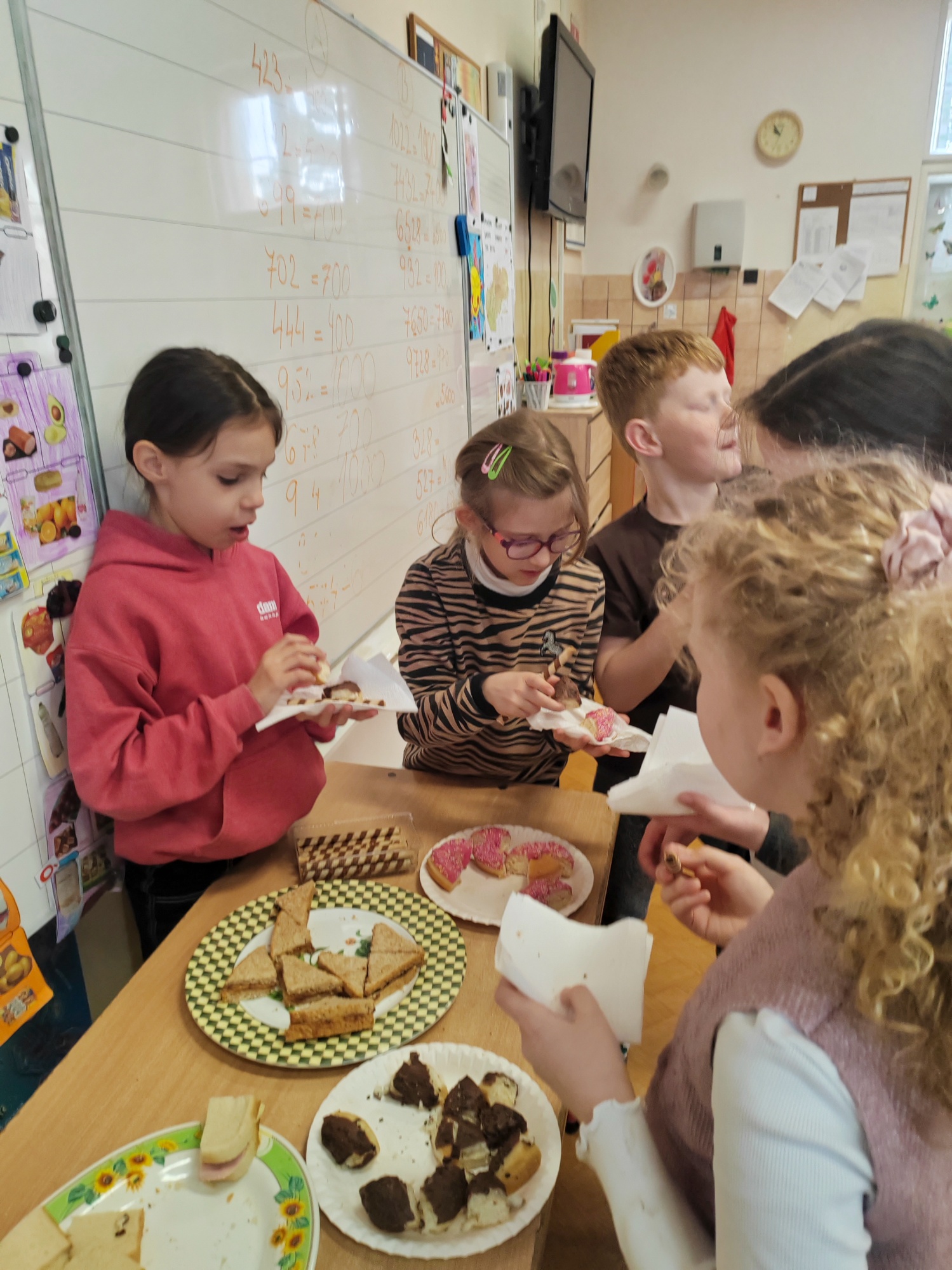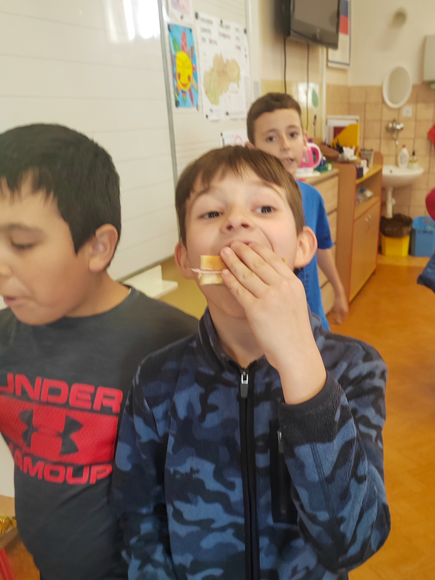 "Popritom sme sa rozprávali o tom, čo deti bežne nosia na desiatu, a spoločne sme hodnotili, ktoré jedlá sú zdravé a ktoré menej.Aj keď väčšine žiakov najviac chutili sendviče podobné tým našim – najmä šunkové a čokoládové – mnohí si obľúbili aj nové kombinácie, napríklad arašidové maslo alebo uhorkové sendviče," priblížila pani učiteľka Helena Yordanová.